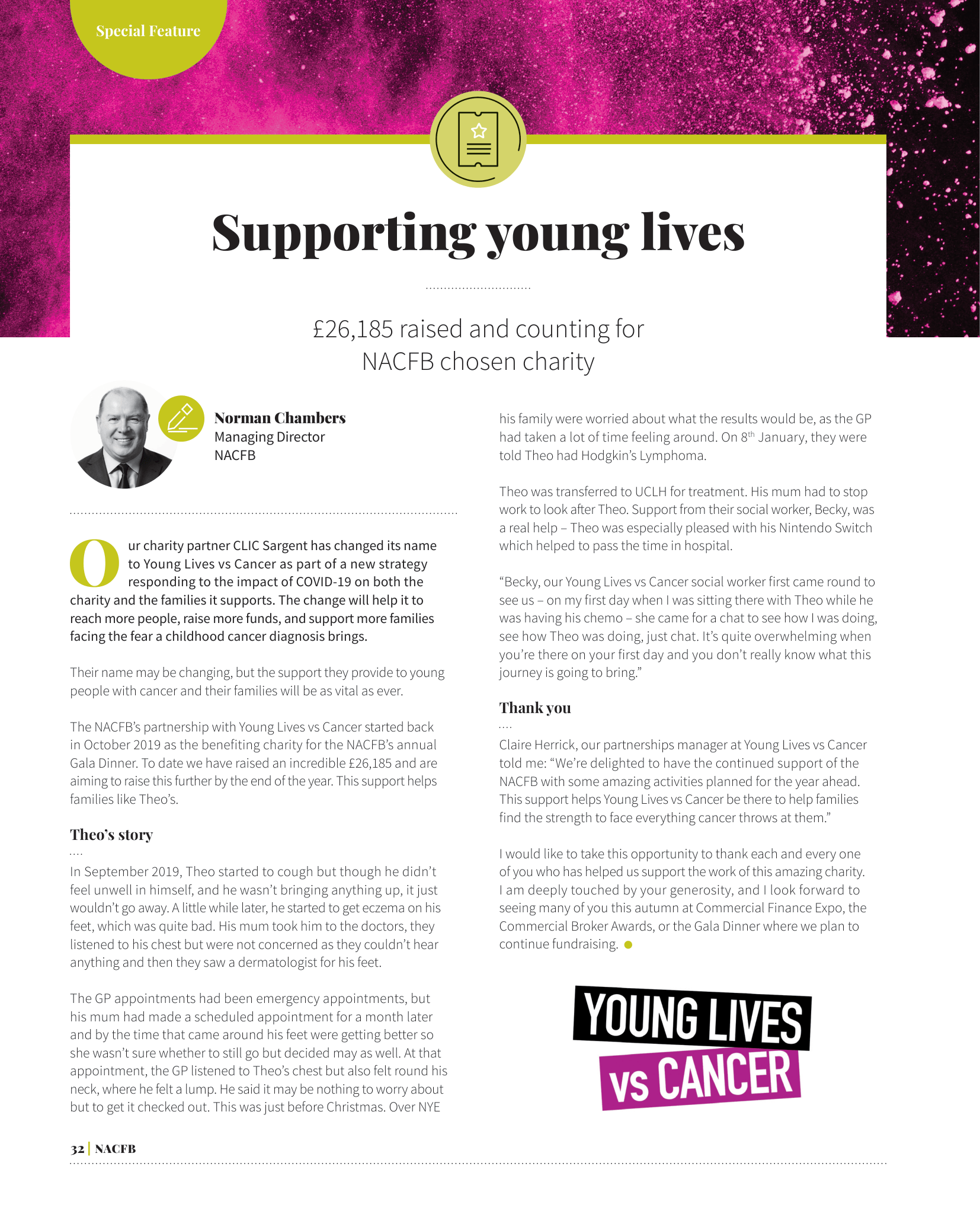When I was diagnosed with cancer, I was distraught. But no matter what challenges I faced during that time, Young Lives VS Cancer (CLIC Sargent at the time) would help me brave through it all. They referred me to several charities (Including Make-A-Wish) that further helped me keep my morale in my cancer treatment. After my treatment had finished, I was contacted by Young Lives VS Cancer about participating in their 2021 Childhood cancer awareness month campaign. To help spread awarness of Young Lives VS Cancer, I have appeared in various different print publications including the Metro, as well as appearing on BBC Local Radio. I found this opportunity invaluable as it was my first endeavor in public fundraising that reached a large audience.